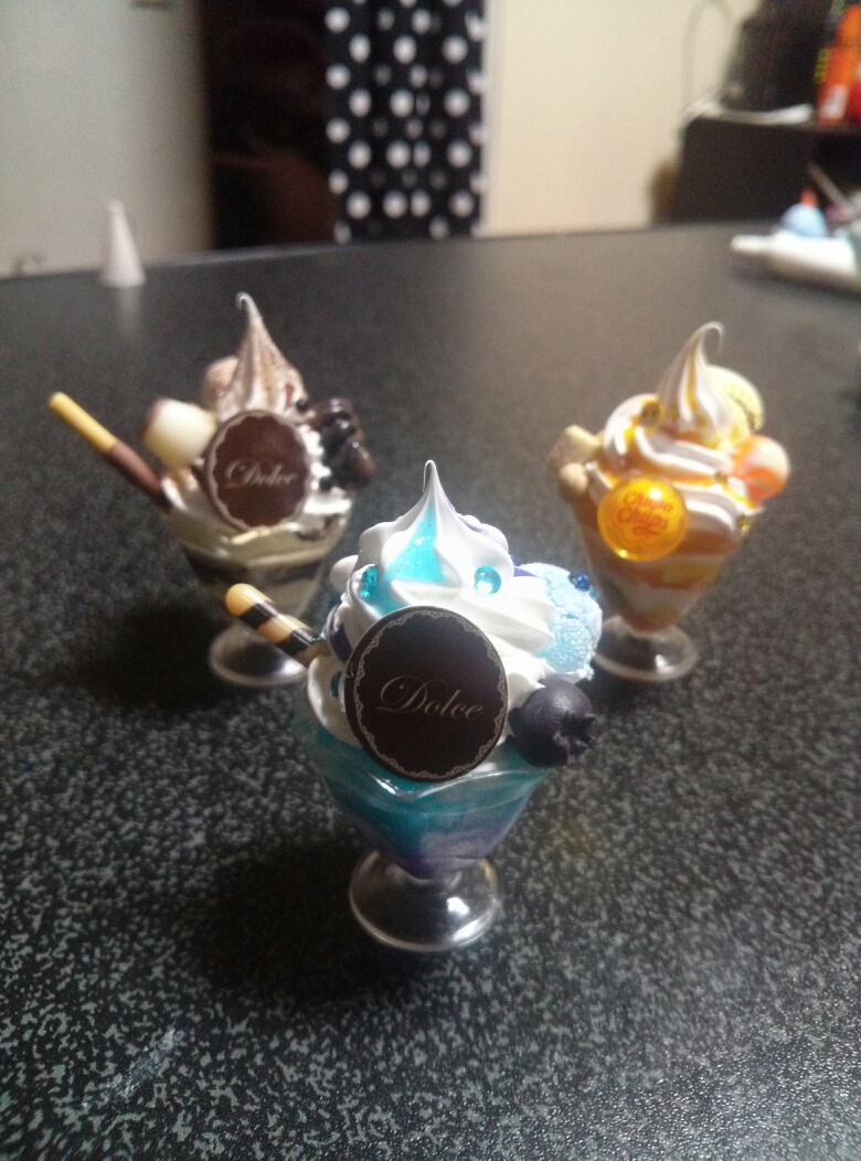 トッピングは紙粘土で作ったアイスと四角いマーブルお菓子。